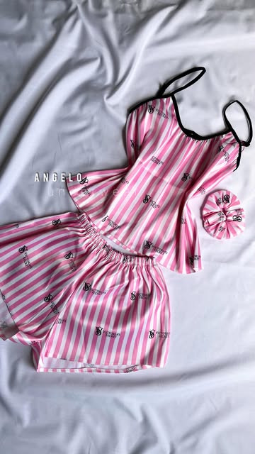 ست تاپ و شلوارک زنانه ساتن به همراه اسکرانچی