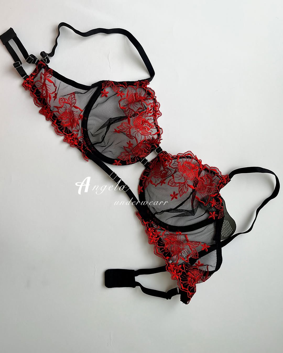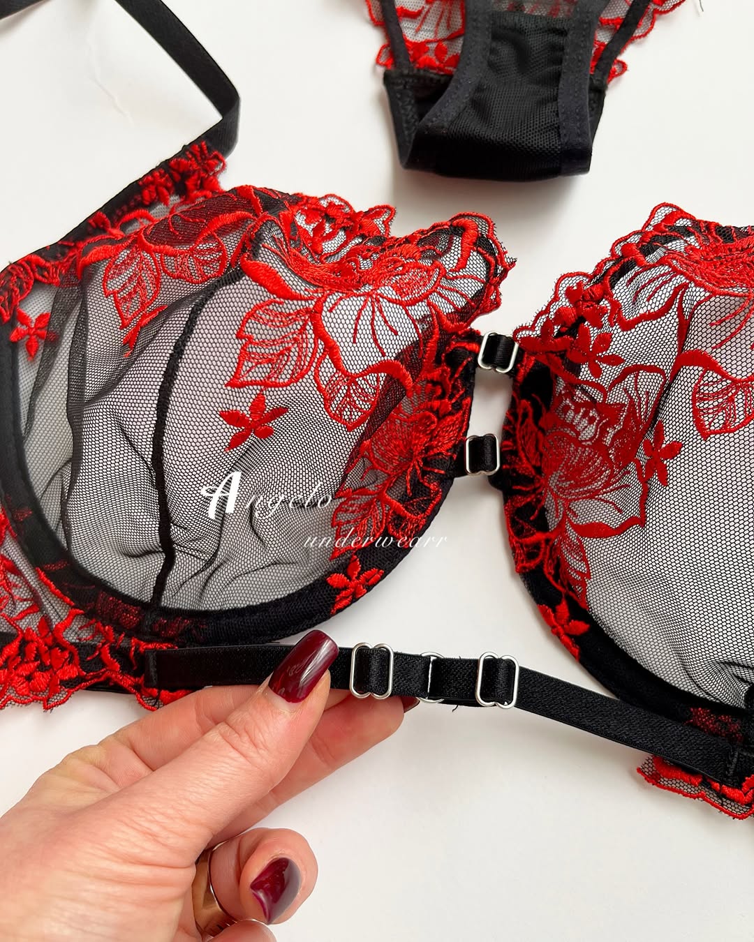 خرید اینترنتی ست شورت و سوتین زنانه گیپور فنردار مشکی با گلهای قرمز با ارسال سریع و قیمت مناسب