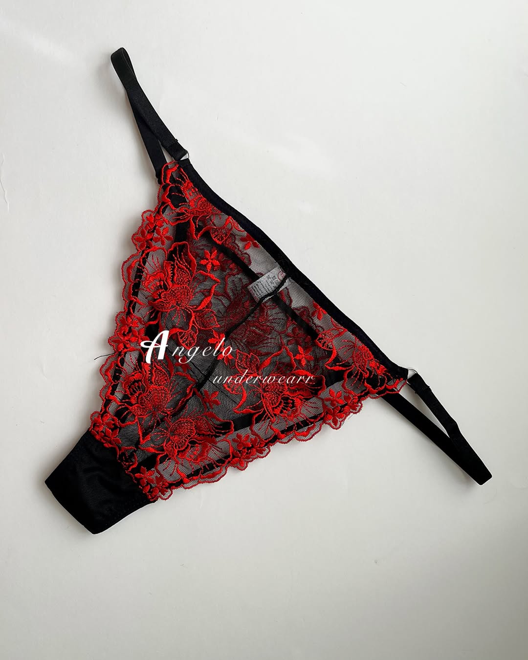 خرید اینترنتی ست شورت و سوتین زنانه گیپور مشکی با گلهای قرمز و شورت بکلس با ارسال سریع و قیمت مناسب